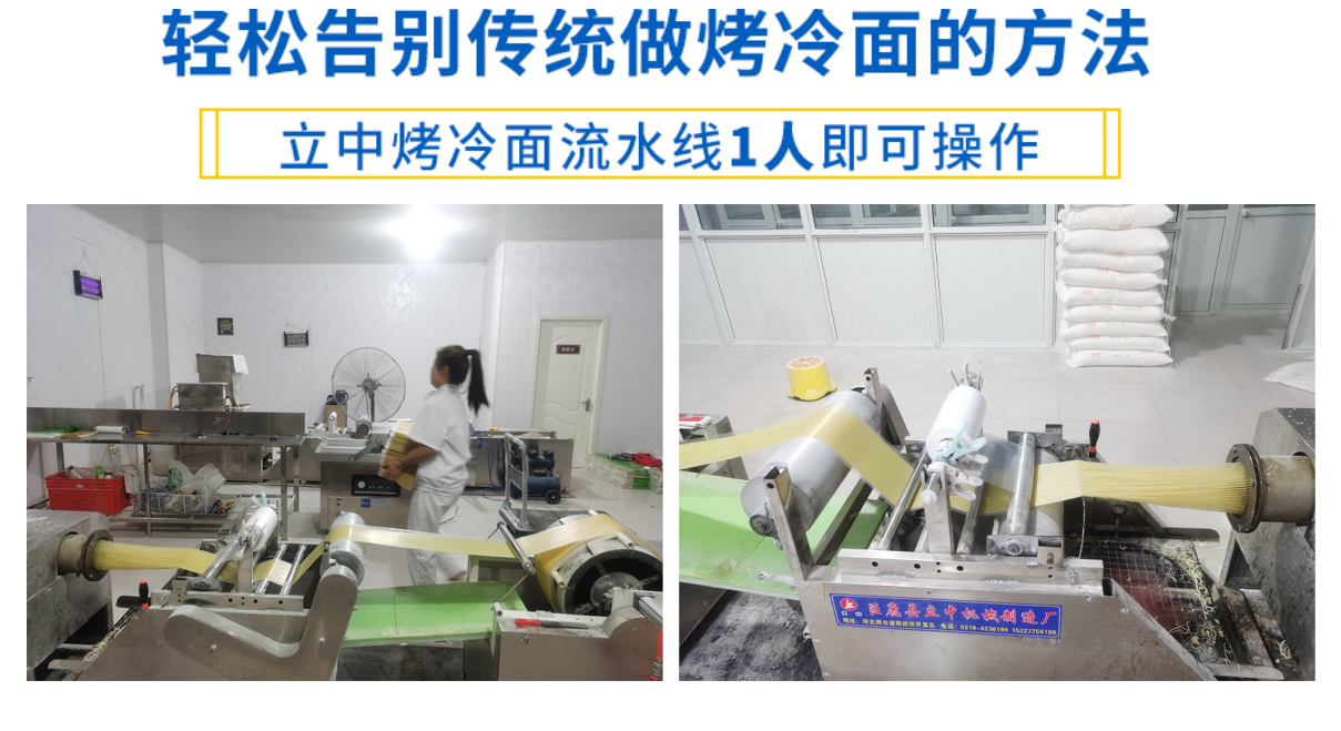 立中烤冷面流水線設備LZ-300-9是先進的烤冷面生產制作機器設備,替代了以往自動烤冷面機器,省時間省人工,真真正正實現了烤冷面生產一體化。歡迎你的訂購,巨鹿立中機械為你提供技術,配方,生產的同時。廠家技術人員將免費上門進行安裝,手把手教你生產操作烤冷面。